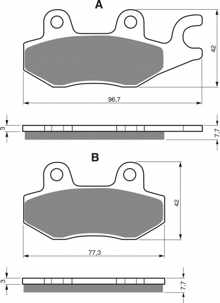 Sintrované brzdové destičky pro lehčí motocykly a běžné použití. Silniční typy mají homologaci TÜV.