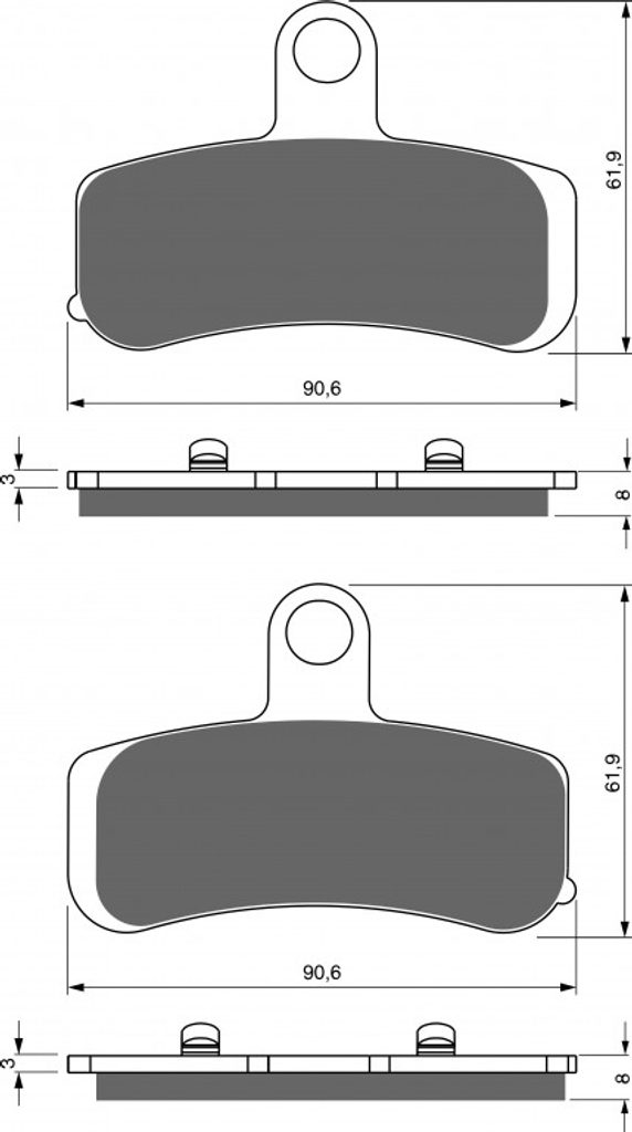 Sintrované brzdové destičky pro lehčí motocykly a běžné použití. Silniční typy mají homologaci TÜV.