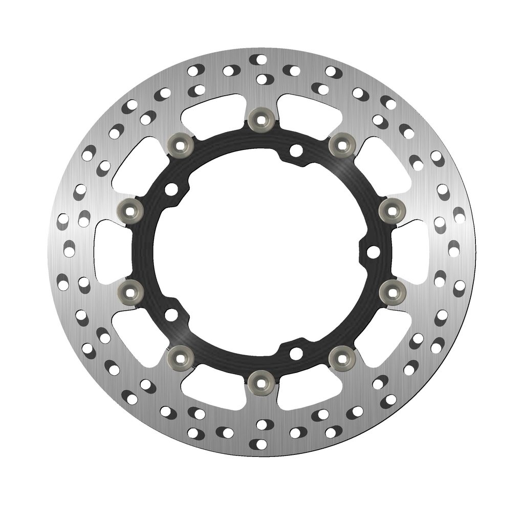 Barva brzdné plochy je výsledkem speciálního tepelného zpracování, které dodává oceli toto charakteristické duhové zbarvení, díky němuž bude váš stroj vynikat mezi ostatními. Chladící otvory nejsou orientovány vertikálně, ale horizontálně a jsou uspořádány ve skupinách po třech v každém směru. Ventilační otvory společně se speciálním tepelným zpracováním zabraňují přehřátí materiálu, které by mohlo vést k deformaci kotouče.