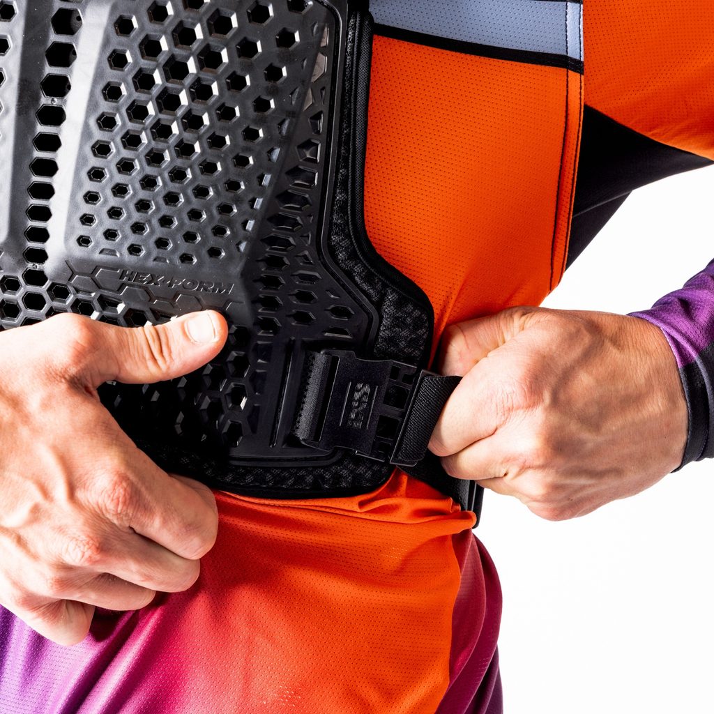 Pro ty, kteří hledají rychlou a jednoduchou ochranu horní části těla bez kompromisů v oblasti bezpečnosti, je Hex Series Pull-Over Body Protect připraven vyrazit do akce. Díky chytrému designu vycházejícímu z řady Hex kombinuje vnější povrch s nízkým třením a vnitřní vrstvu pohlcující nárazy, aby výrazně omezil poškození při pádu, a zároveň zvýšil komfort a výkon. Nastavitelná ochrana je zjednodušena tak, aby kryla pouze záda a hrudník, a je tvořena 3D navrženým materiálem HeX-Matter, který absorbuje a rozkládá energii nárazu, a tvrdým skořepinovým prvkem umožňujícím bezpečný skluz. Vyvinuto pro plnou volnost pohybu a flexibilitu – mysleli jsme na vše, abyste se při šlapání do pedálů mohli soustředit jen na jízdu.