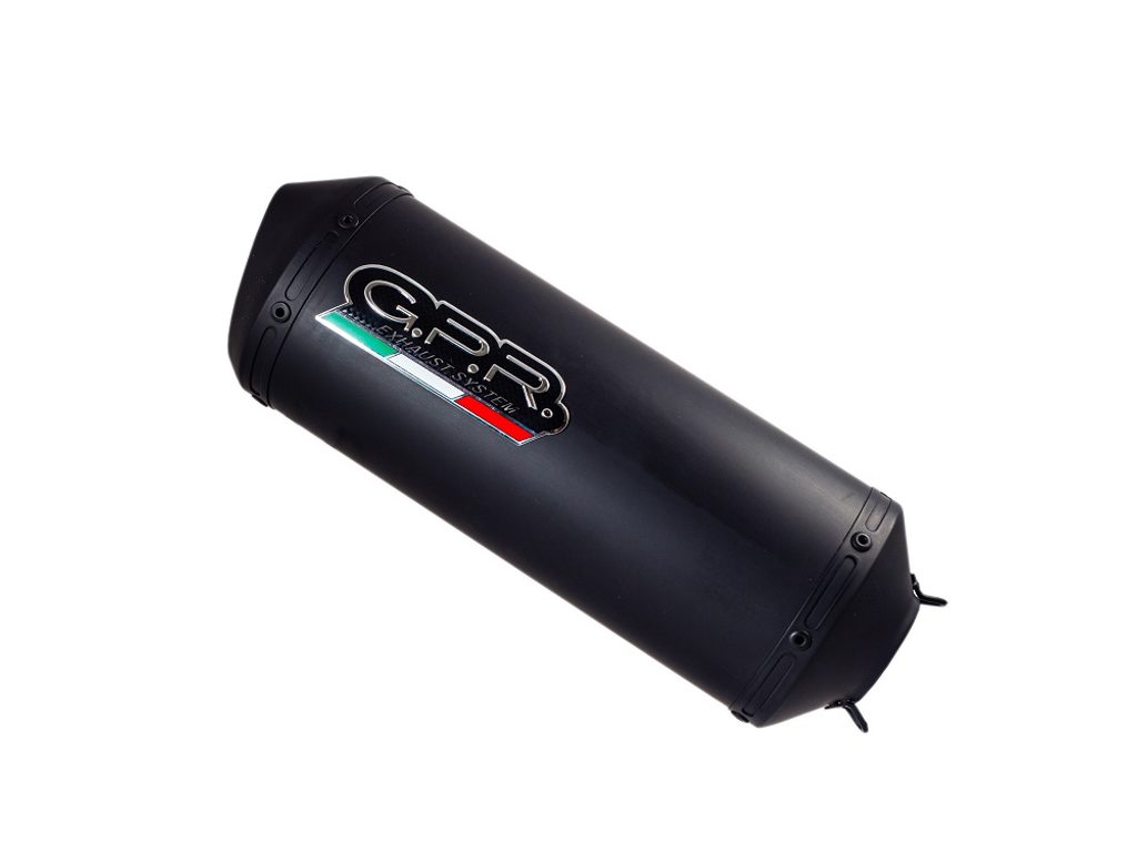 Dvojitá koncovka výfuku Slip-on GPR GHISA CAT.47.GHI Matná černá zahrnuje odnímatelné db killery, spojovací svody a katalyzátory