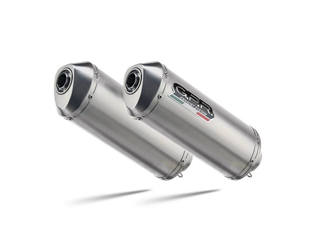 Dvojitá koncovka výfuku Slip-on GPR SATINOX E4.ROY.7.CAT.SAT Leštěná nerezová ocel zahrnuje spojovací svod, odnímatelný dB killer a katalyzátor
