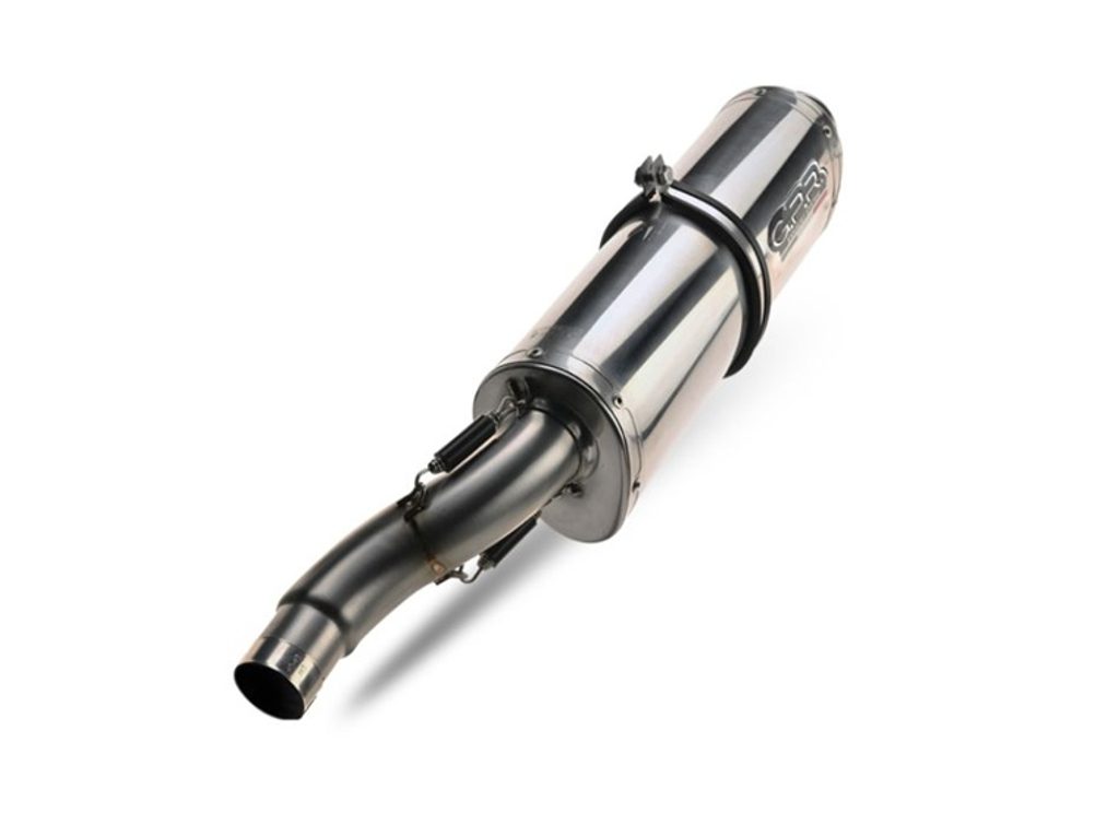 Dvojitá koncovka výfuku Slip-on GPR TRIOVAL A.14.TRI Leštěná nerezová ocel zahrnuje odnímatelné dB killery a spojovací svody