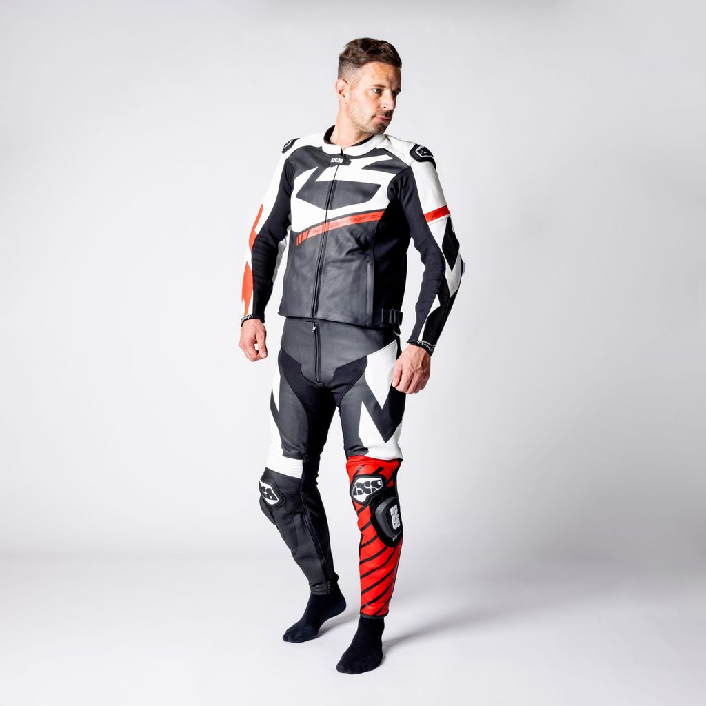 ACE 1.0 KOŽENÁ DVOUDÍLNÁ KOMBINÉZA ČERNO-BÍLO-ČERVENÁ