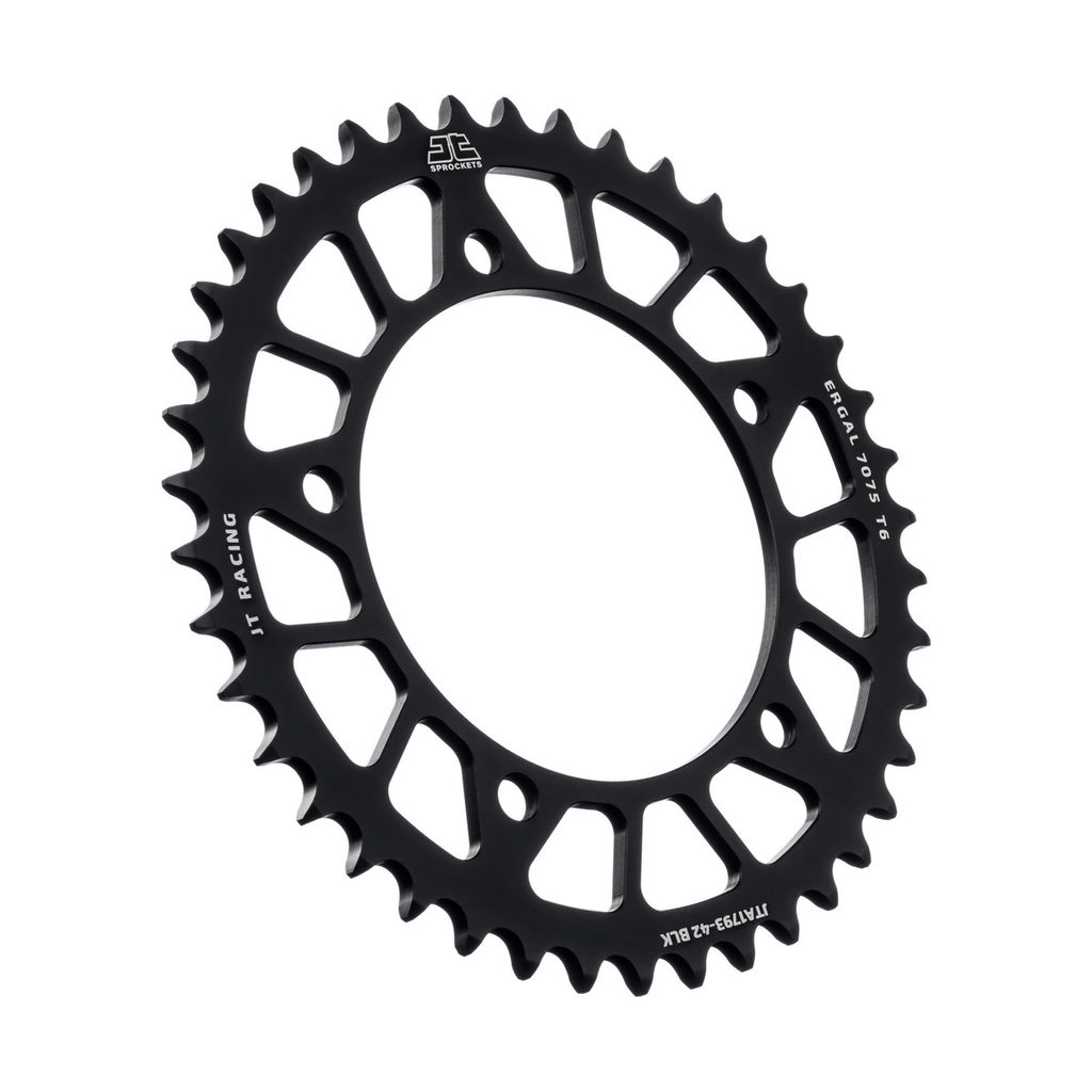JT používá výhradně ty nejkvalitnější materiály. Pro závodní lehké rozety je to hliníková slitina letecké kvality 7075-T6, pro přední pastorky extrémně pevná slitina SCM420 (chrom-molybdenová ocel) a pro zadní ocelové rozety jako jediný výrobce používá ultra odolnou uhlíkovou ocel C49.