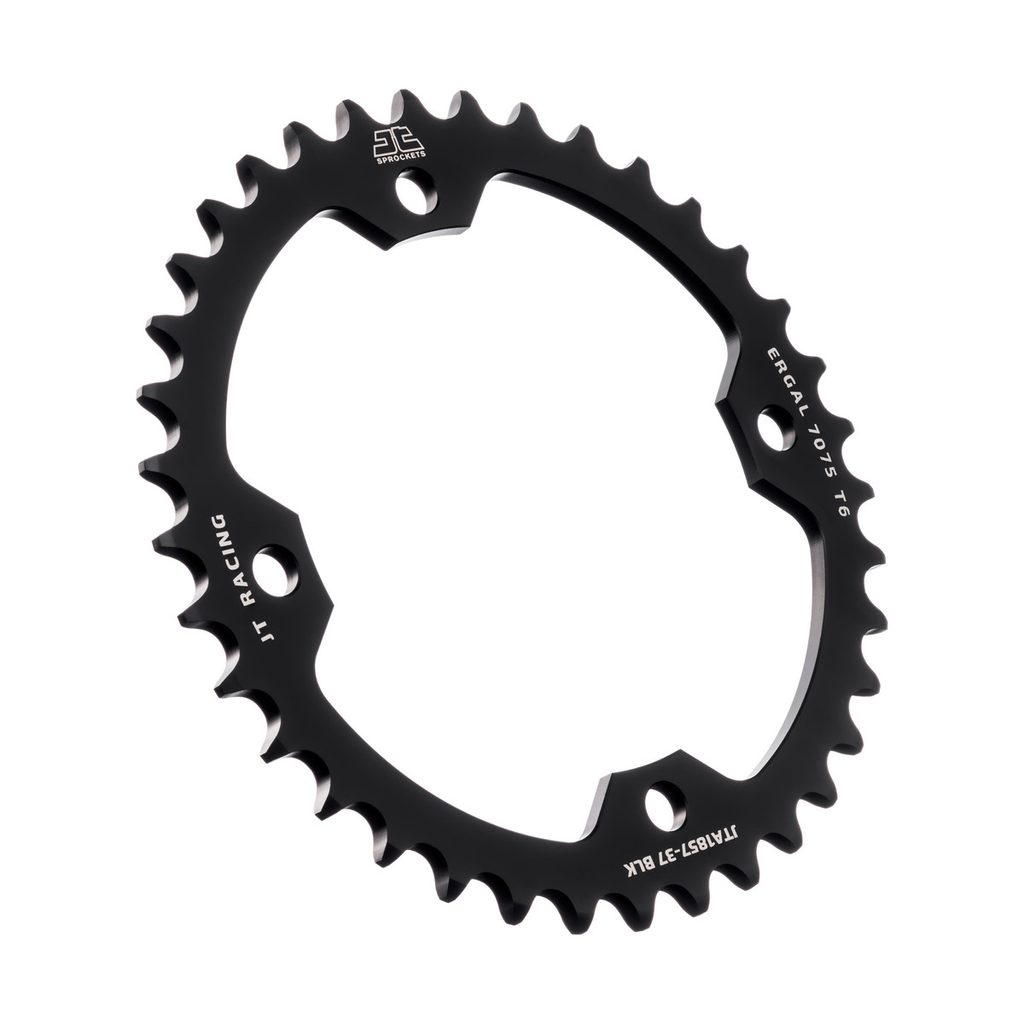 JT používá výhradně ty nejkvalitnější materiály. Pro závodní lehké rozety je to hliníková slitina letecké kvality 7075-T6, pro přední pastorky extrémně pevná slitina SCM420 (chrom-molybdenová ocel) a pro zadní ocelové rozety jako jediný výrobce používá ultra odolnou uhlíkovou ocel C49.