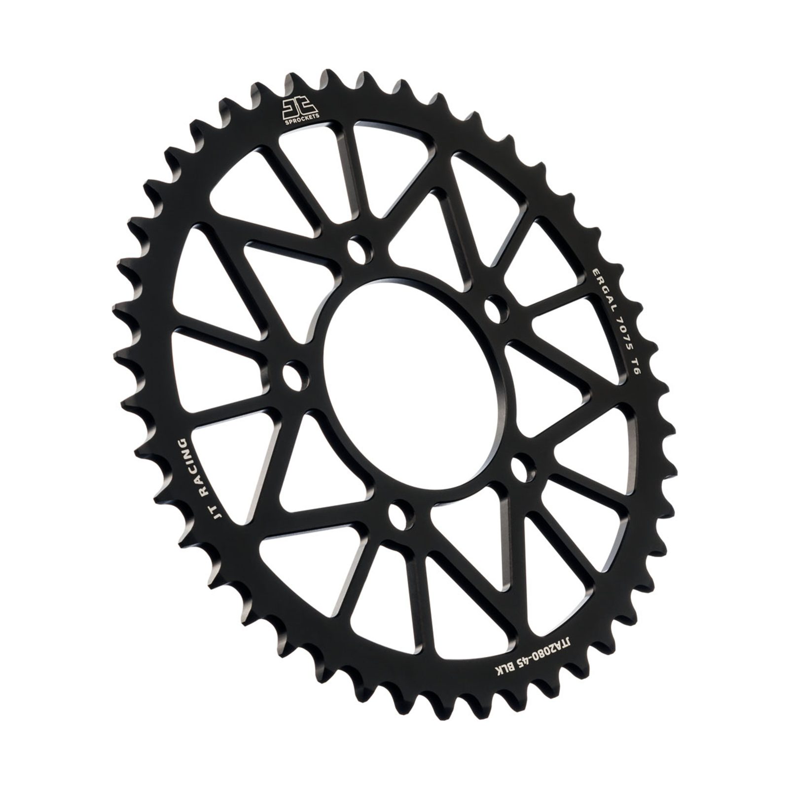 JT používá výhradně ty nejkvalitnější materiály. Pro závodní lehké rozety je to hliníková slitina letecké kvality 7075-T6, pro přední pastorky extrémně pevná slitina SCM420 (chrom-molybdenová ocel) a pro zadní ocelové rozety jako jediný výrobce používá ultra odolnou uhlíkovou ocel C49.
