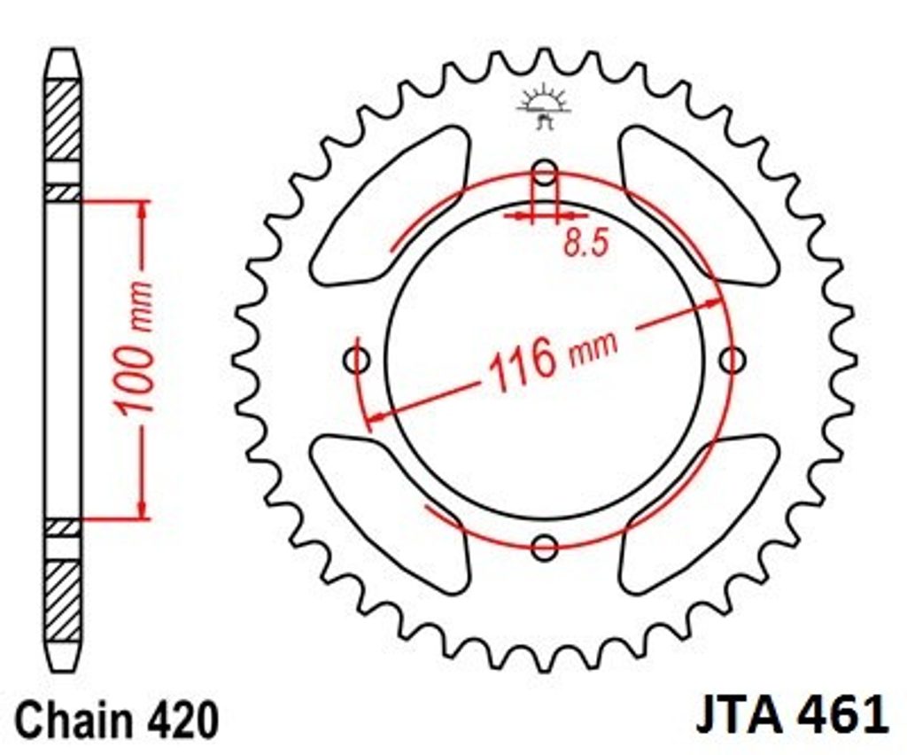 Hliníková řetězová rozeta JT JTA 461-51 51 zubů, 420