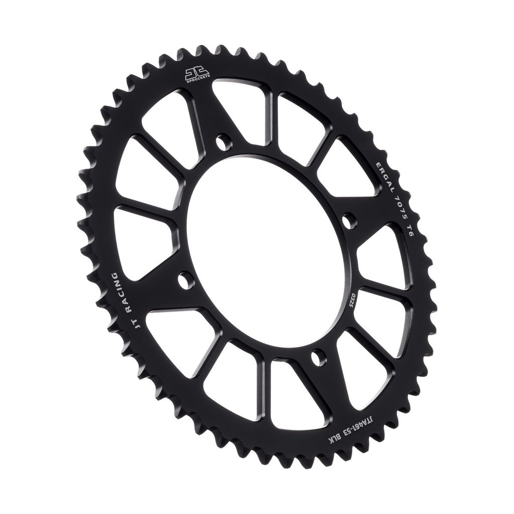 JT používá výhradně ty nejkvalitnější materiály. Pro závodní lehké rozety je to hliníková slitina letecké kvality 7075-T6, pro přední pastorky extrémně pevná slitina SCM420 (chrom-molybdenová ocel) a pro zadní ocelové rozety jako jediný výrobce používá ultra odolnou uhlíkovou ocel C49.