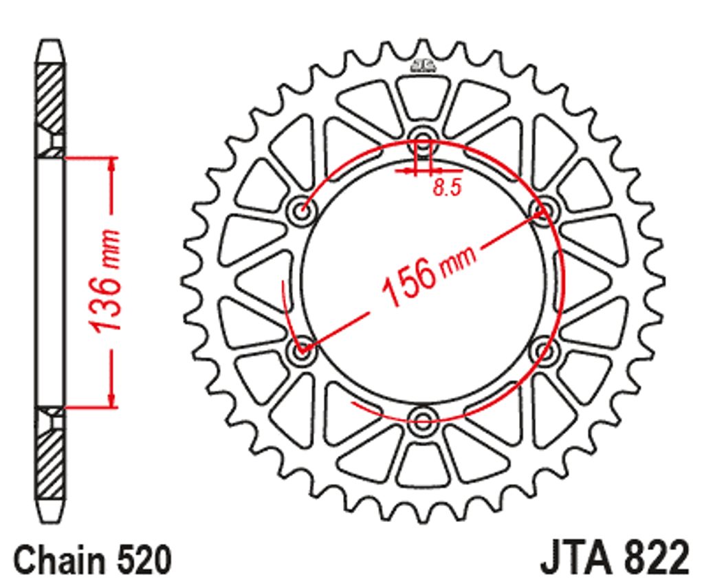 Hliníková řetězová rozeta JT JTA 822-53 53 zubů, 520