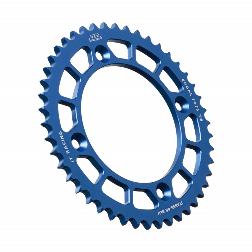JT používá výhradně ty nejkvalitnější materiály. Pro závodní lehké rozety je to hliníková slitina letecké kvality 7075-T6, pro přední pastorky extrémně pevná slitina SCM420 (chrom-molybdenová ocel) a pro zadní ocelové rozety jako jediný výrobce používá ultra odolnou uhlíkovou ocel C49.
