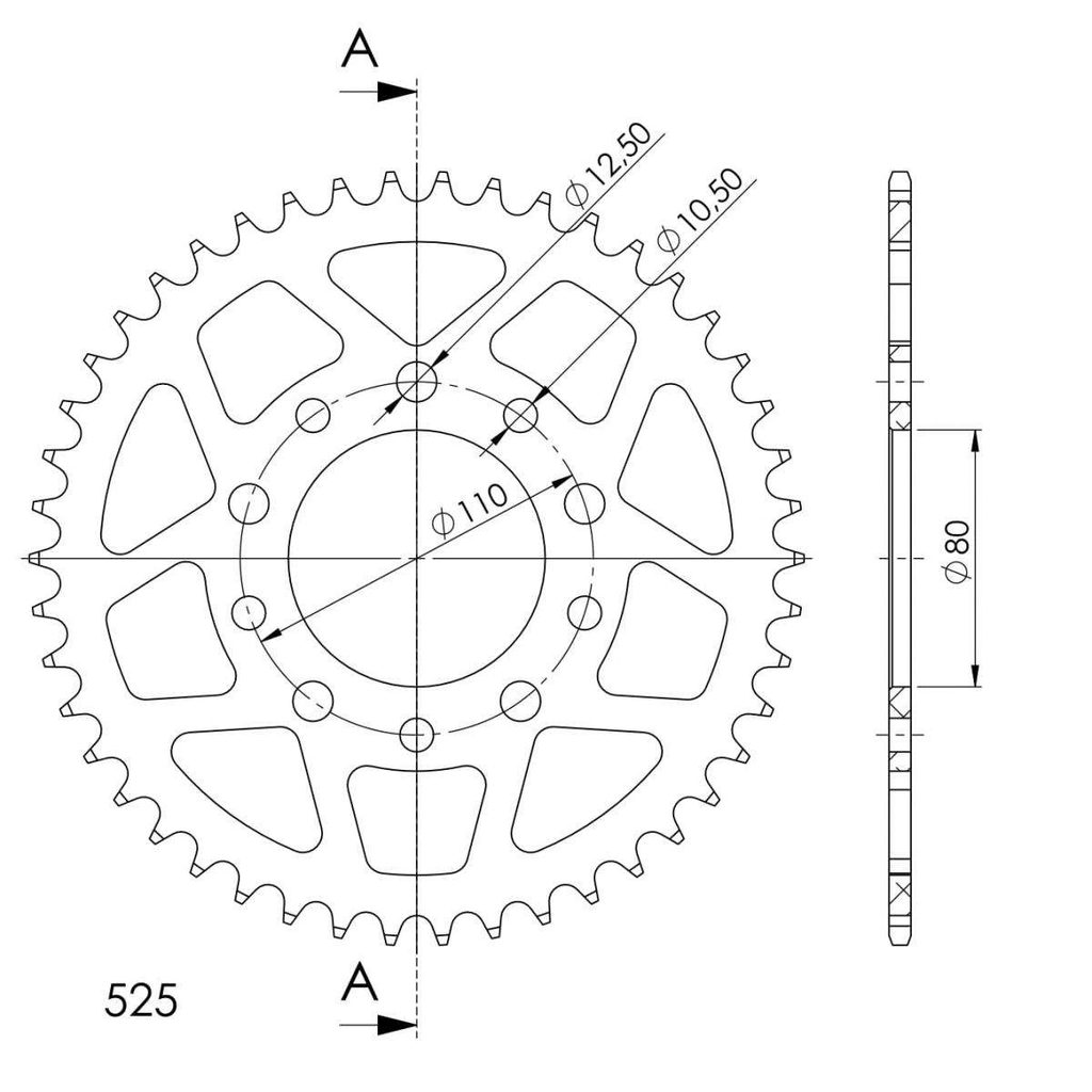 Hliníková řetězová rozeta SUPERSPROX RAL-1332:46-BLK černý 46 zubů, 525