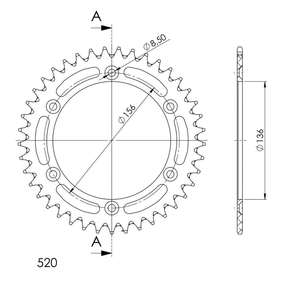 Hliníková řetězová rozeta SUPERSPROX RAL-1512:40-BLK černý 40 zubů, 520