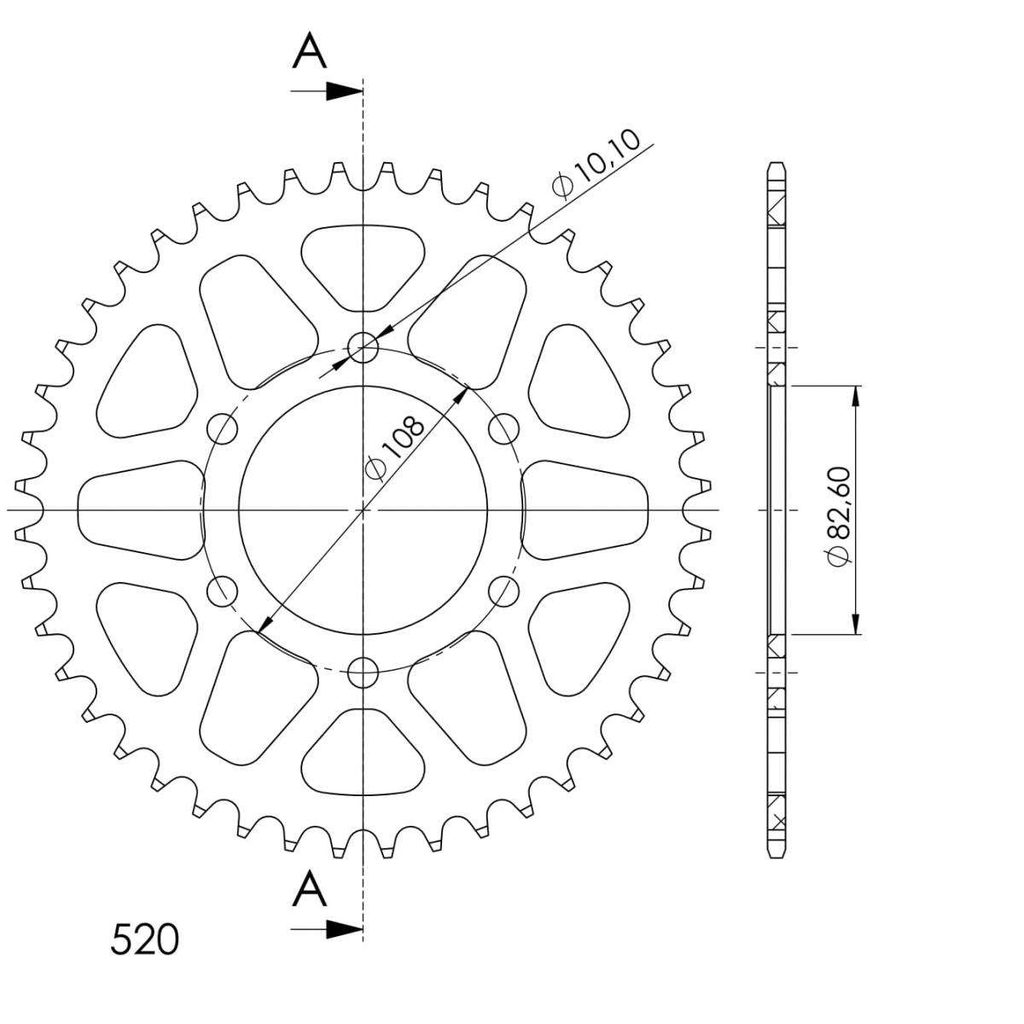 Hliníková řetězová rozeta SUPERSPROX RAL-1526:44-BLK černý 44 zubů, 520