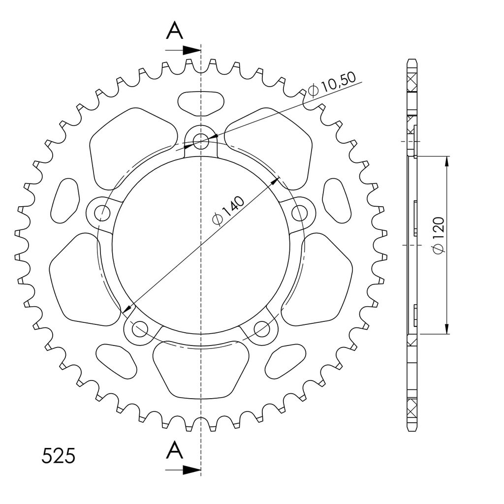 Hliníková řetězová rozeta SUPERSPROX RAL-1792:47-BLK černý 47 zubů, 525