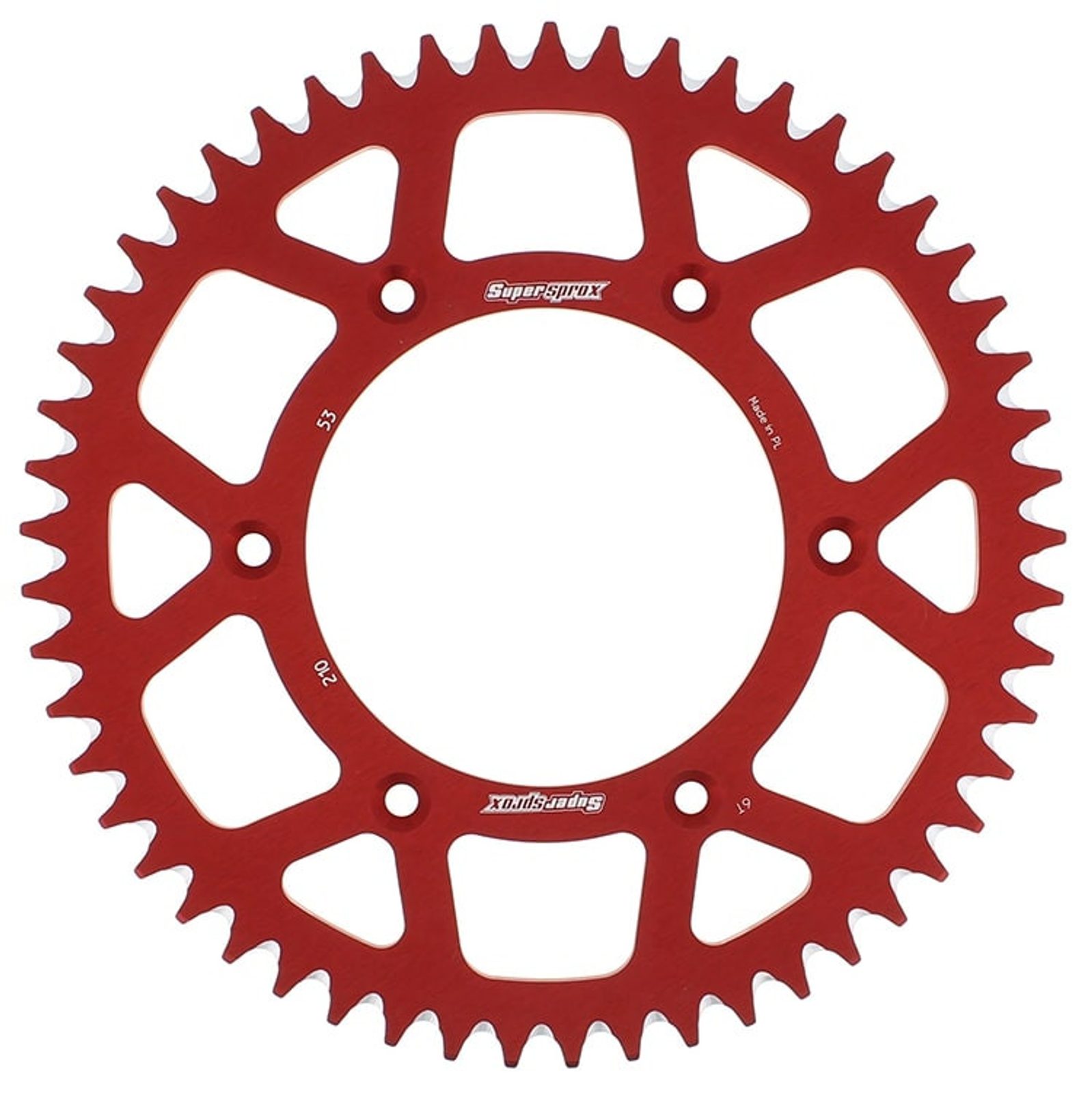 Hliníková řetězová rozeta SUPERSPROX RAL-210:53-RED červená 53 zubů, 520