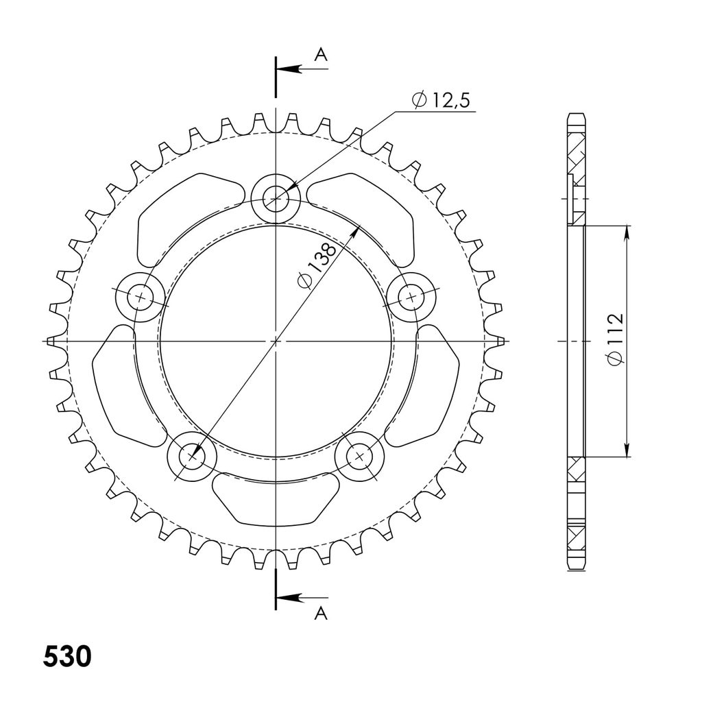 Hliníková řetězová rozeta SUPERSPROX RAL-302:42-BLK černý 42 zubů, 530