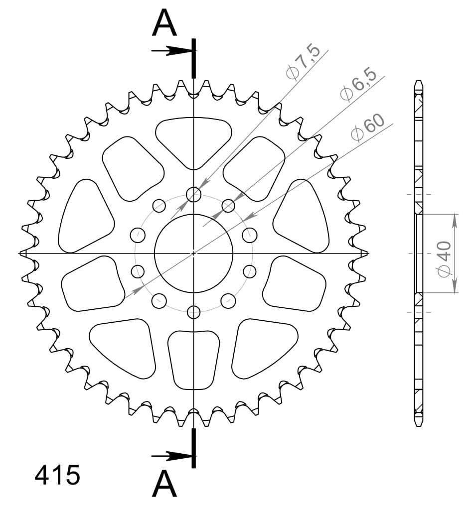 Hliníková řetězová rozeta SUPERSPROX RAL-451:42-BLK černý 43 zubů, 415
