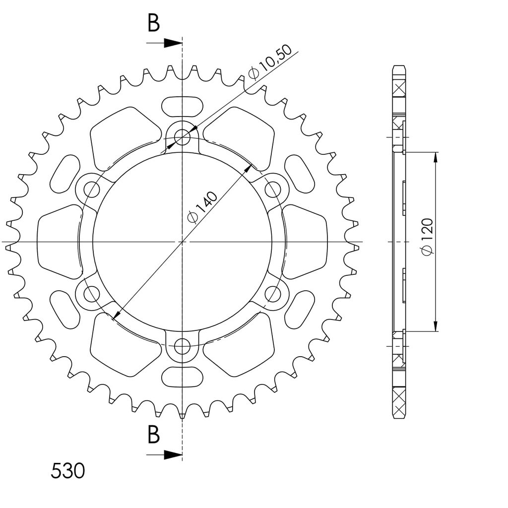 Hliníková řetězová rozeta SUPERSPROX RAL-499:45-BLK černý 45 zubů, 530