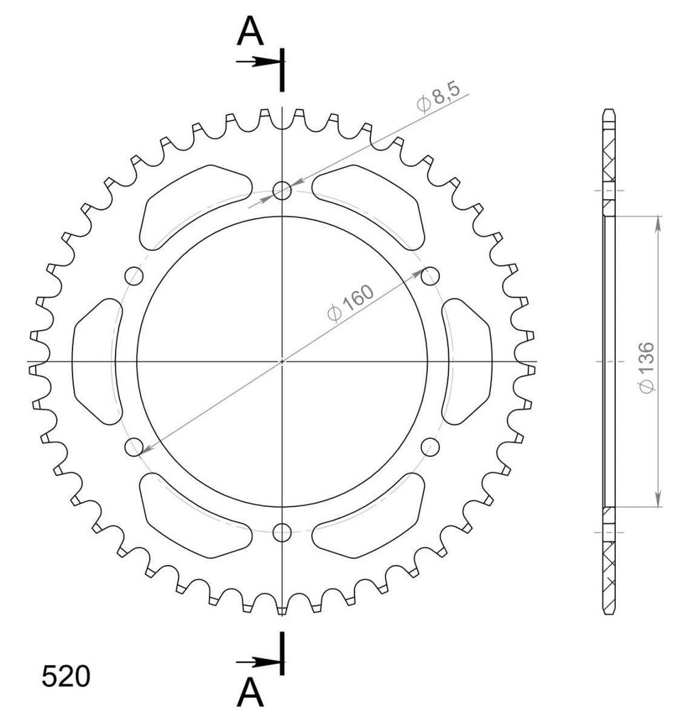 Hliníková řetězová rozeta SUPERSPROX RAL-5:45-BLK černý 45 zubů, 520