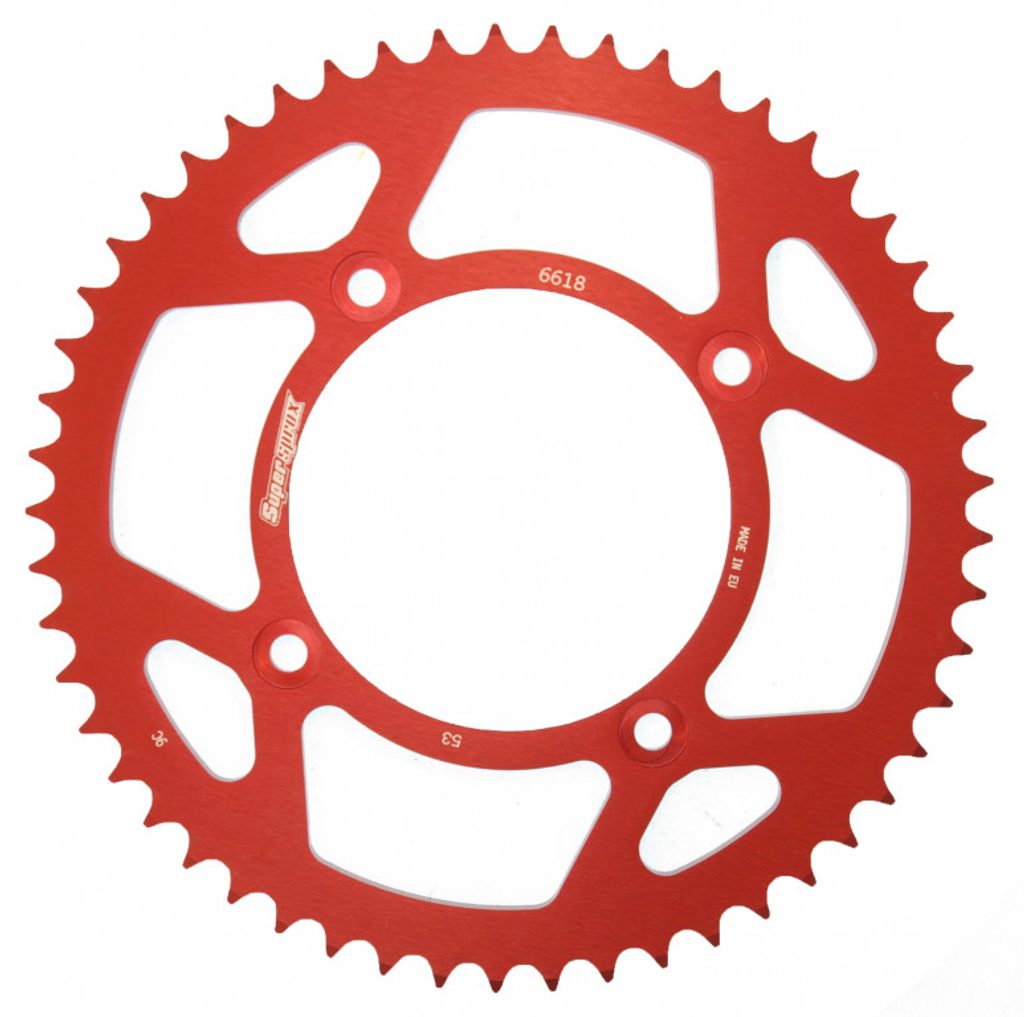 Hliníková řetězová rozeta SUPERSPROX RAL-6618:53-RED červená 53 zubů, 420