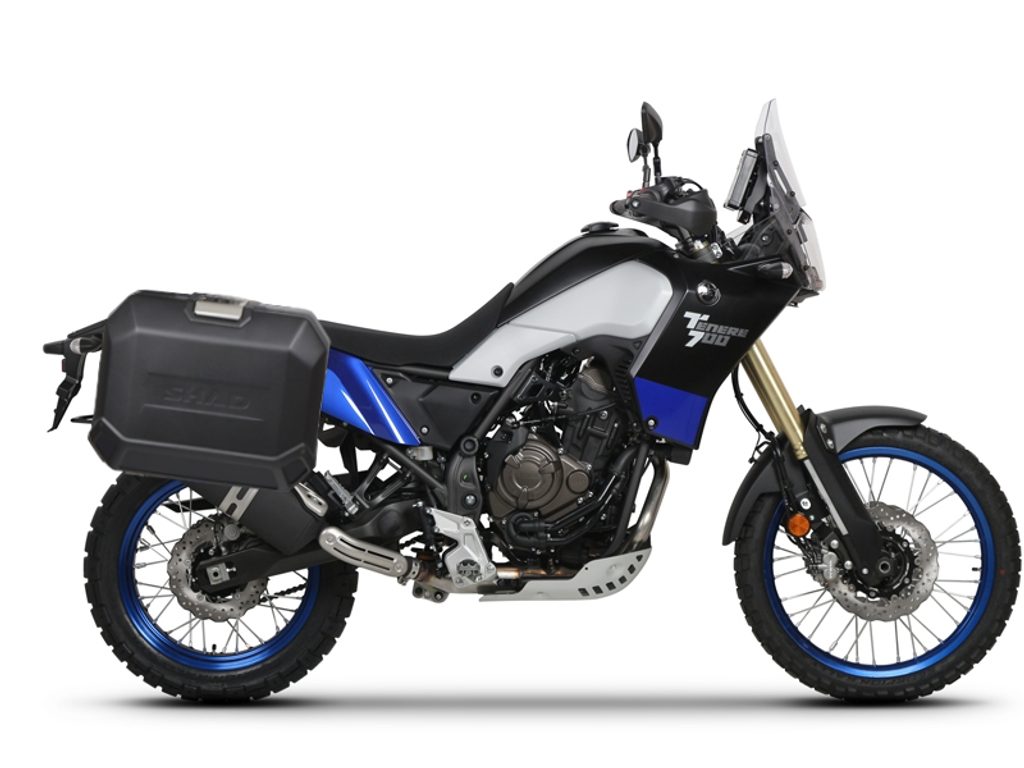 Kompletní sada bočních černých hliníkových kufrů SHAD TERRA BLACK 36L/47L, včetně montážní sady SHAD YAMAHA Tenere 700 XTZ690