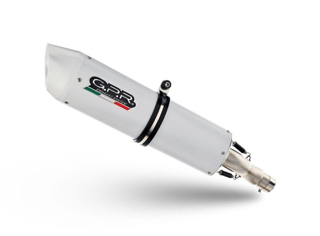 Koncovka výfuku Slip-on GPR ALBUS CERAMIC E4.HU.46.RACEDB.ALB Lesklá bílá zahrnuje spojovací svod a odnímatelný dB killer
