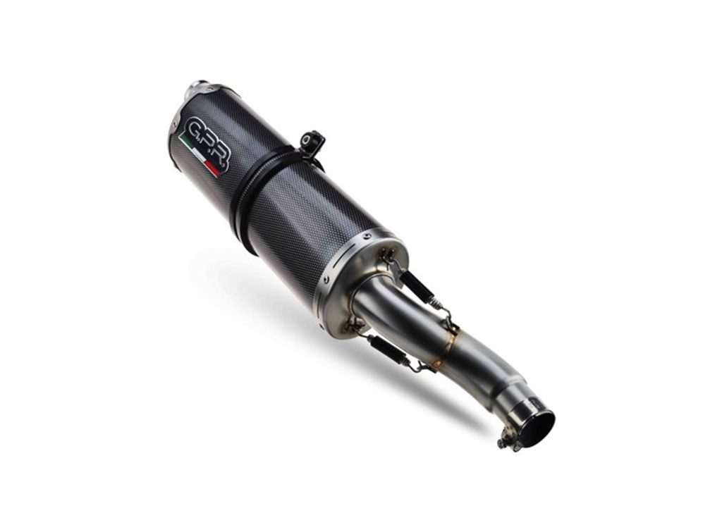 Koncovka výfuku Slip-on GPR DUAL POPPY E5.H.275.DUAL.PO Karbonový vzhled zahrnuje spojovací svod a odnímatelný dB killer