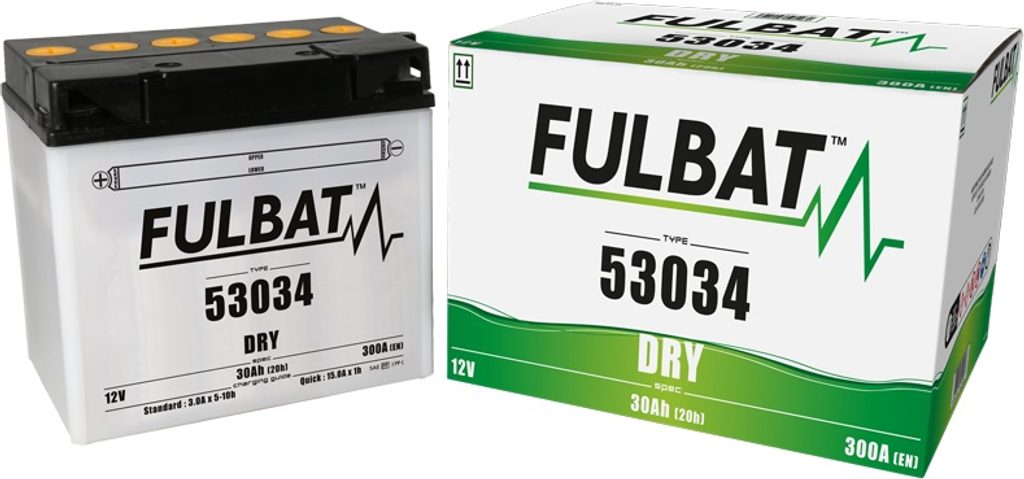 53034 je součástí naší řady DRY. Je speciálně navržena tak, aby poskytovala dobrý výkon a vysokou odolnost vůči vibracím. Tato 12V baterie s kapacitou 30 Ah je dodávána s balením elektrolytu, musí být aktivována před prvním použitím a následně pravidelně kontrolována.
