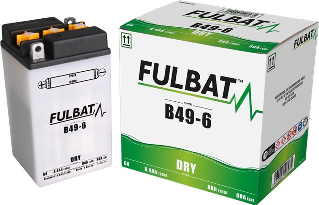 Řada DRY suchých baterií nabízí nesrovnatelný výběr 6V a 12V modelů. Používá se v řadě motorek, hlavně v čínských skútrech. Dodává se suchá, nenaplněná kyselinou, takže ji lze dlouho skladovat, aniž by potřebovala kontrolu či dobíjení. Před prvním použitím je potřeba ji naplnit kyselinou (elektrolytem). Ta je dodávána jako součástí balení, ve správném množství.