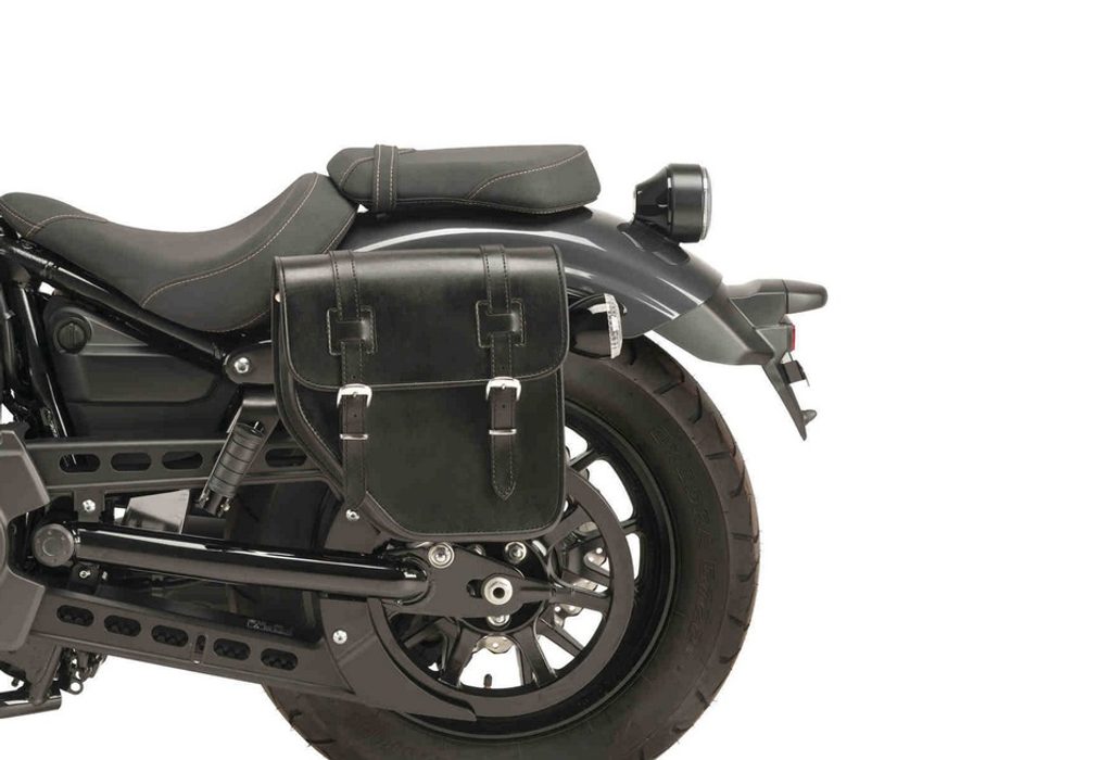 Kožená sedlová brašna CUSTOMACCES IBIZA APS015N černý pravá část s boční kovovou základnou + univerzální držák