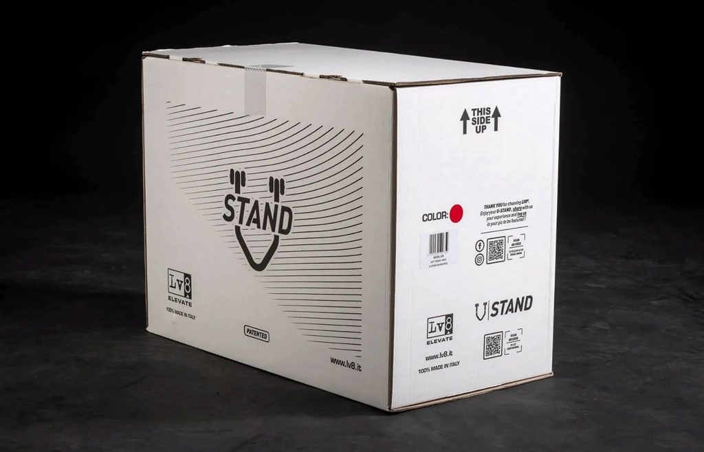 Patentovaný jednostranný montážní stojan (levá strana) dodávaný ve dvou dílech – lze jej sestavit bez použití šroubů či šroubovacích spojů.
