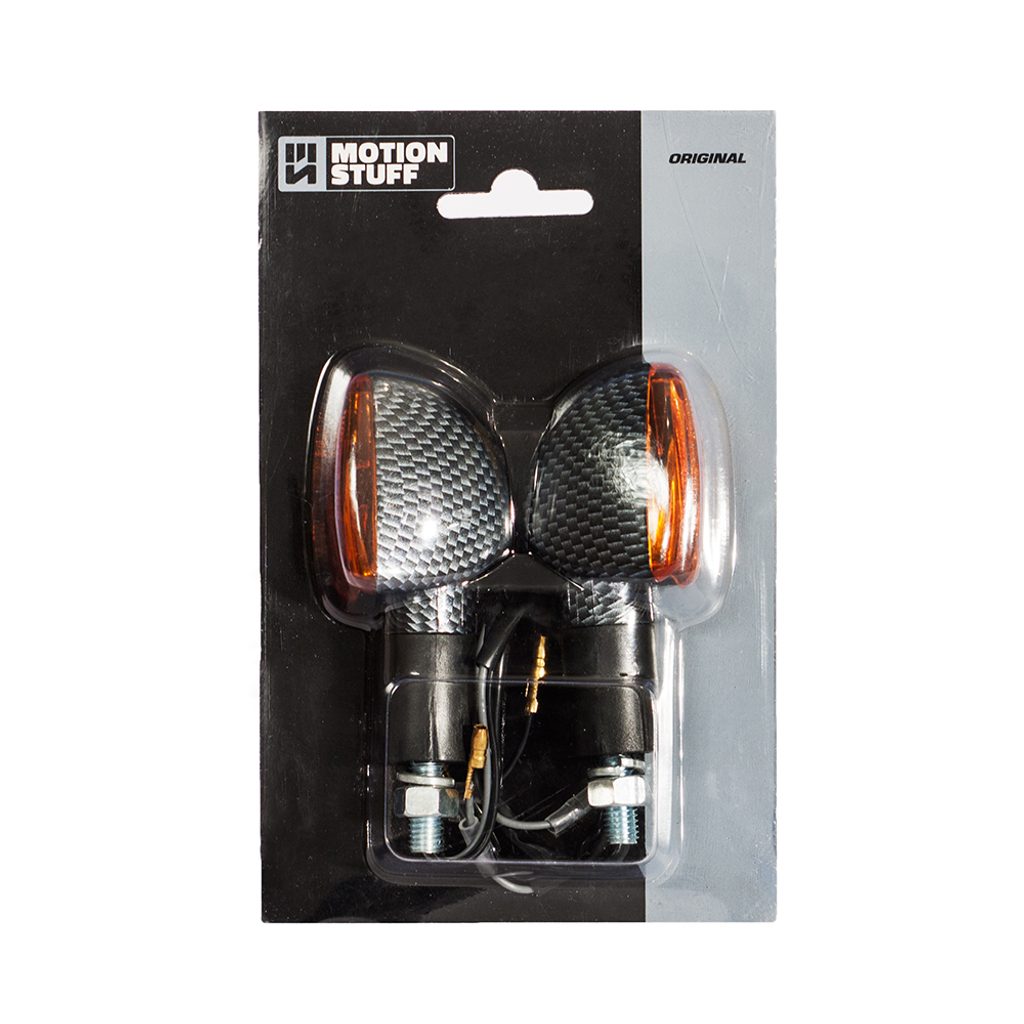 Karbon vzhled s oranžovým sklíčkem, dlouhá nožička, žárovka, E-mark homologace, pár 2ks