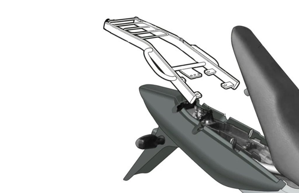 K upevnění vrchního kufru SHAD na motorku stačí namontovat tuto montážní sadu, plotna je vždy součástí kufru (kromě kufrů TR48/TR37).