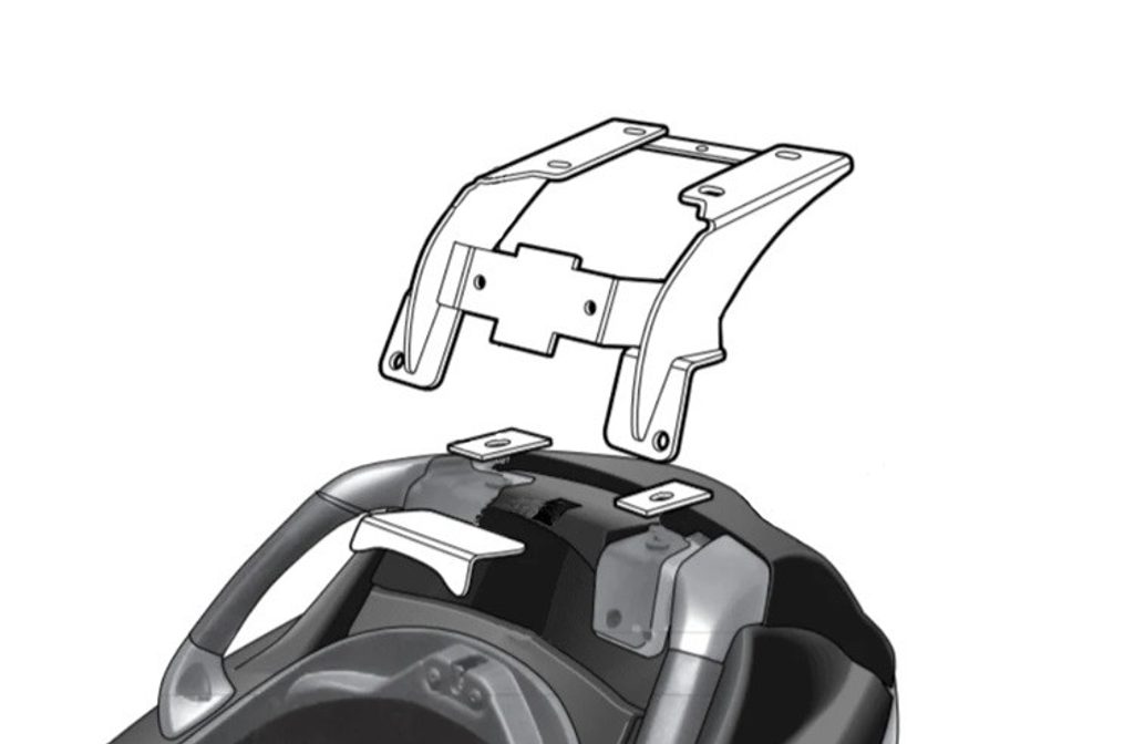 K upevnění vrchního kufru SHAD na motorku stačí namontovat tuto montážní sadu, plotna je vždy součástí kufru (kromě kufrů TR48/TR37).