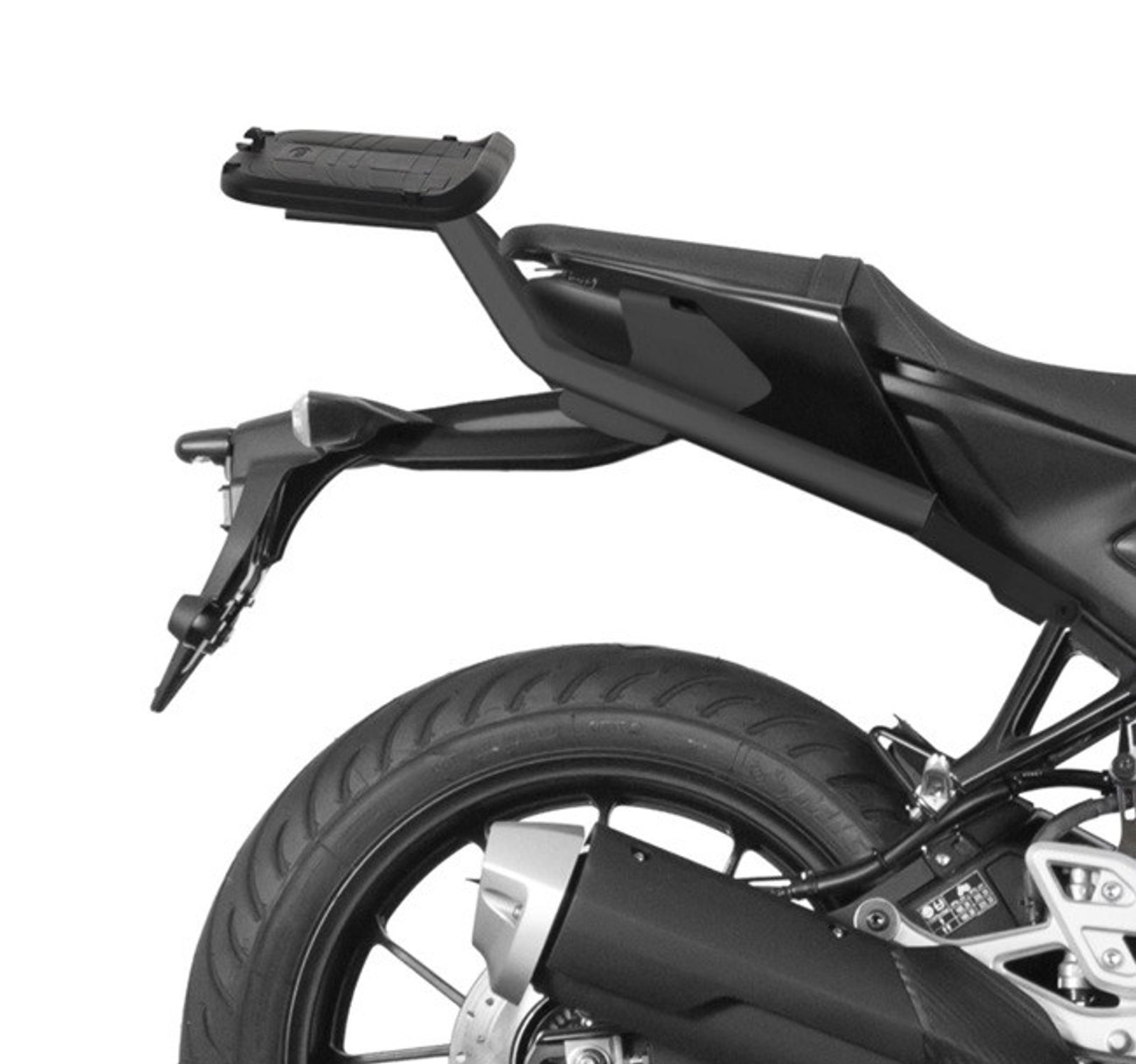 K upevnění vrchního kufru SHAD na motorku stačí namontovat tuto montážní sadu, plotna je vždy součástí kufru (kromě kufrů TR48/TR37).