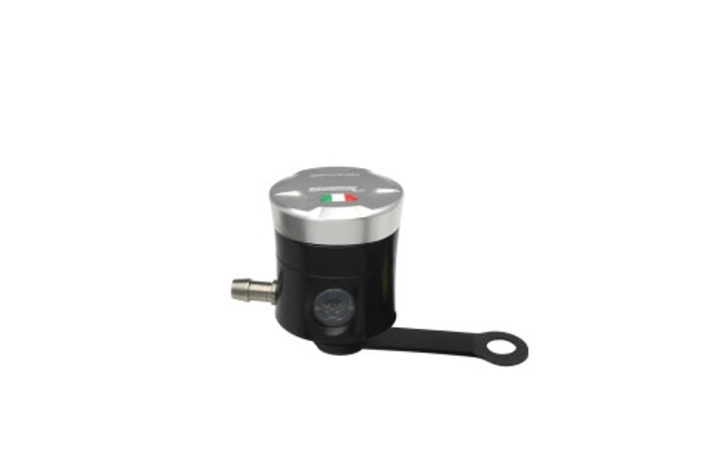 Accossato CNC-worked clutch fluid reservoir, capacity of 15 cm3, horizontal oil spill. Straight braket provided. You can choose the colour match of th