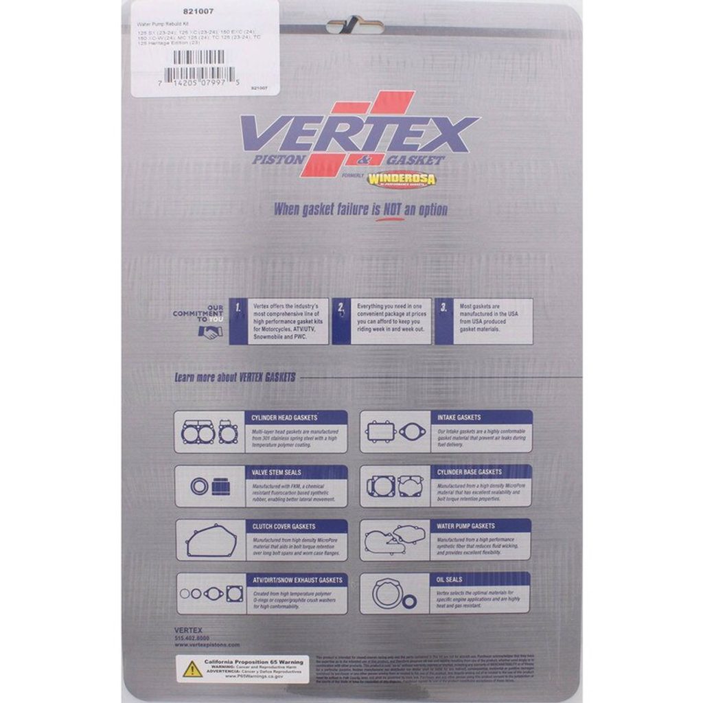 Vertex Water Pump Rebuild Kit, ea, 1