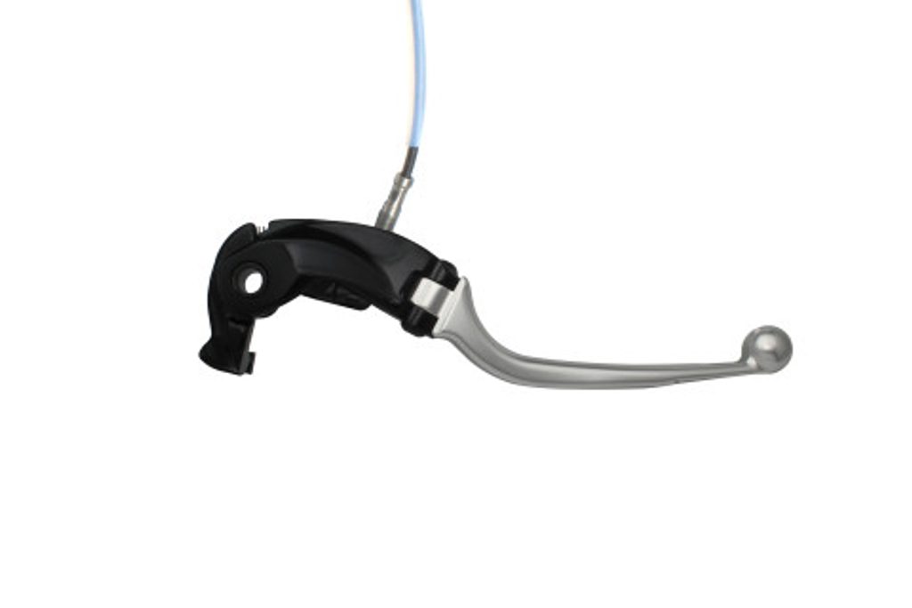 Folding brake lever with integrated adjuster, for Nissin radial master cylinders. It is made in aluminium, CNC worked and anodyzed in 7 different colu