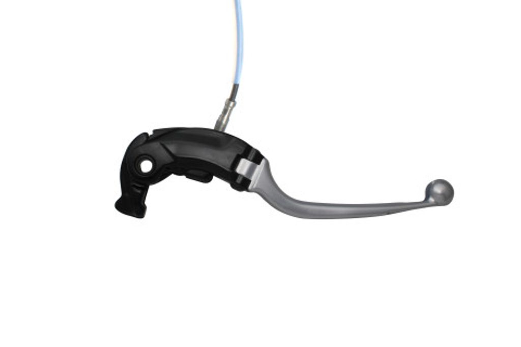 Folding brake lever with integrated adjuster, for Nissin radial master cylinders. It is made in aluminium, CNC worked and anodyzed in 7 different colu