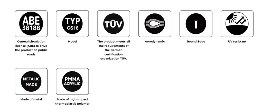 Vyrobeno z PMMA, zaručuje nejlepší ochranu proti možným nárazům a především proti větru a povětrnostním podmínkám, které mohou nastat při jízdě. Navíc poskytuje motocyklu lepší aerodynamické vlastnosti.