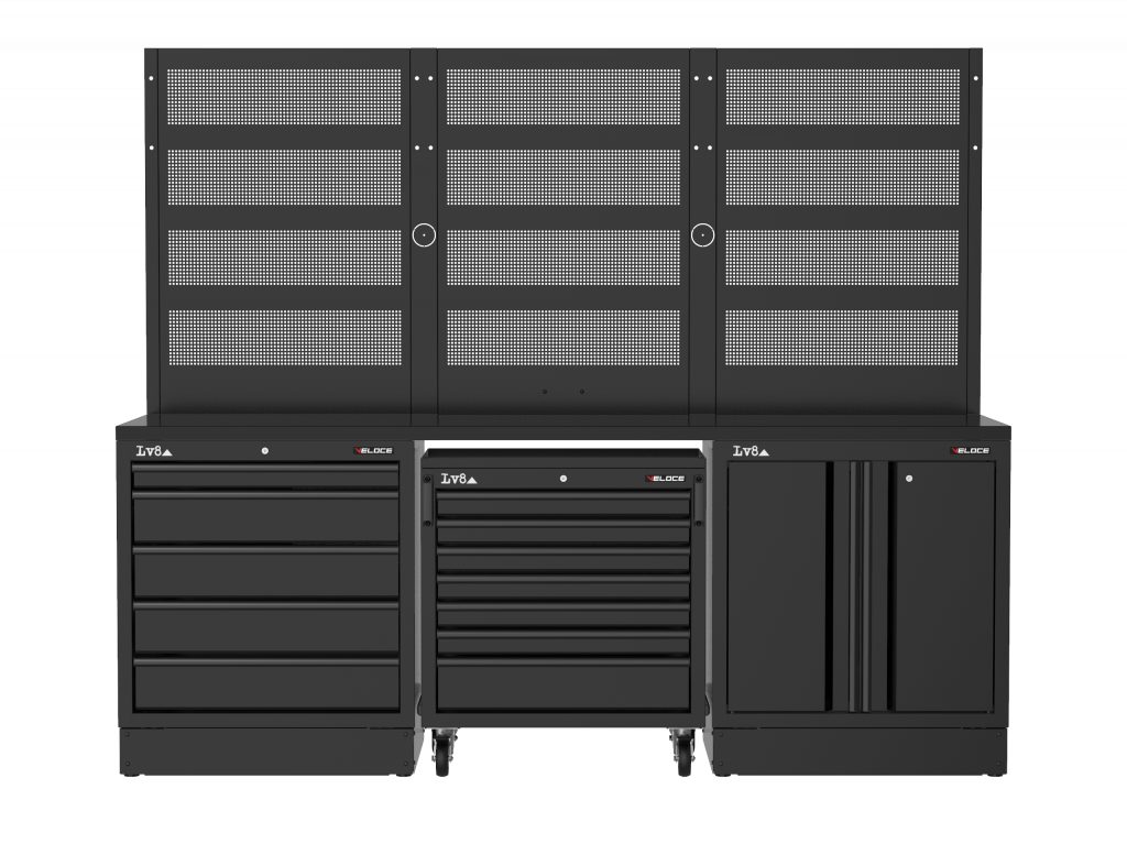 • 3 perforované panely pro zavěšení nářadí a doplňků