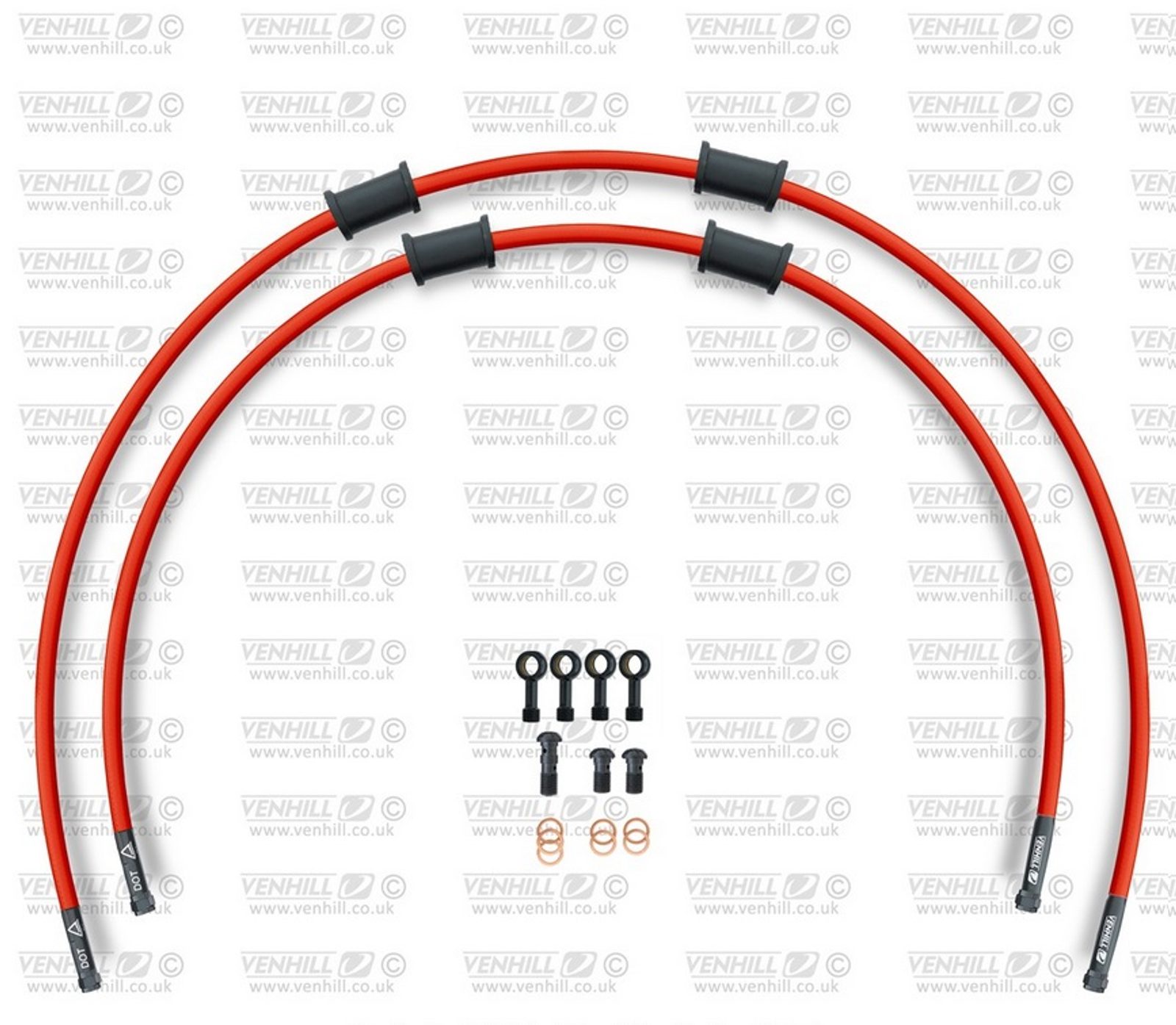 RACE Hadice přední brzdy sada Venhill POWERHOSEPLUS TRI-9021FB-RD (2 hadice v sadě) červené hadice, černé koncovky
