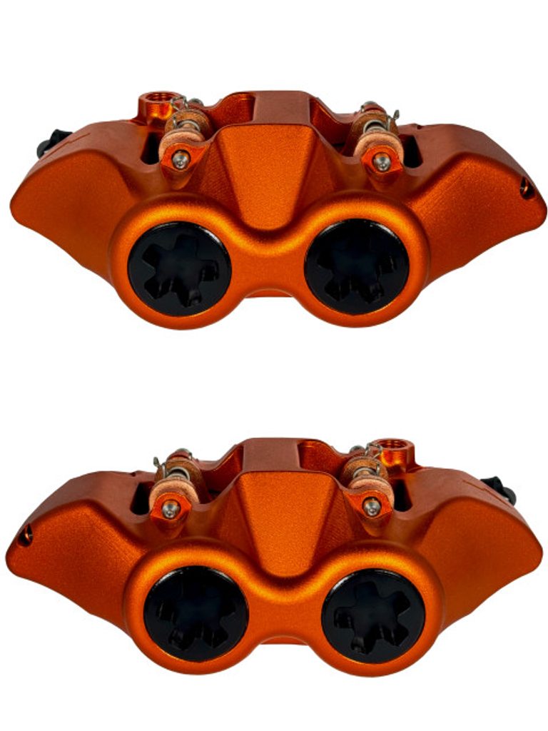 Radiální brzdový třmen ACCOSSATO, kovaný monoblok, rozteč 108mm, písty z hliníku.