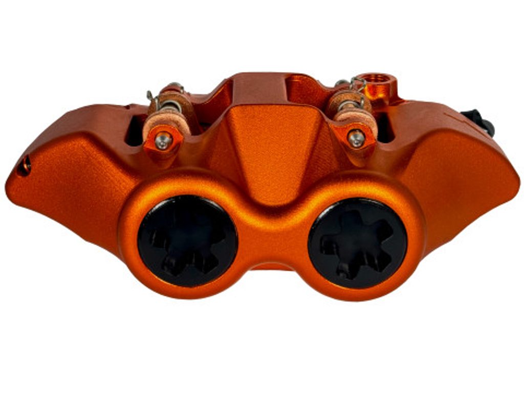 Radiální brzdový třmen ACCOSSATO, kovaný monoblok, rozteč 108mm, písty z hliníku.