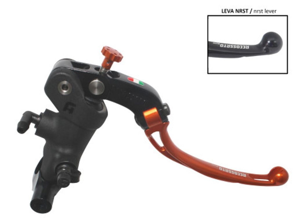 Accossato Radial Brake Master Cylinder For Motorcycles with 25,4mm diameter handlebarIn Forged Aluminium Black Anodyzing 19 x 18. The lever is colourf
