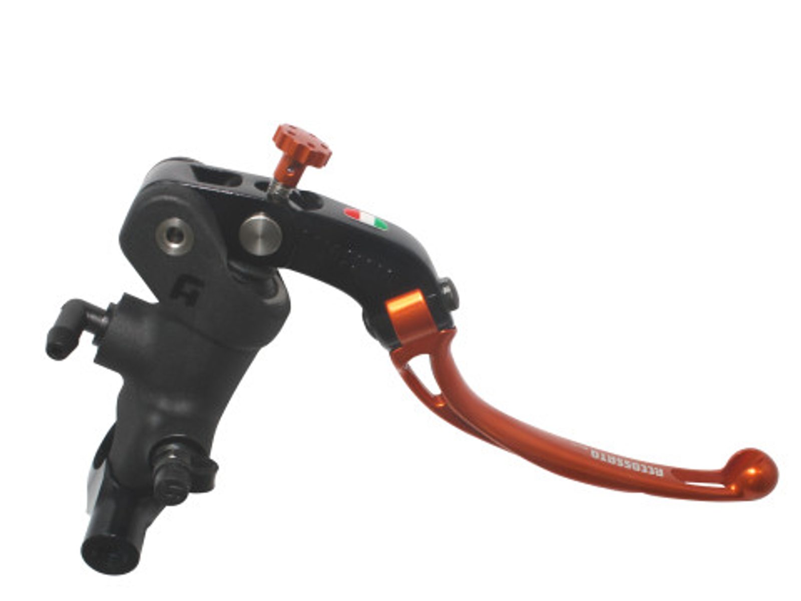 Radiální hlavní brzdový válec ACCOSSATO 19 x 18 se sklápěcí páčkou, oranžový