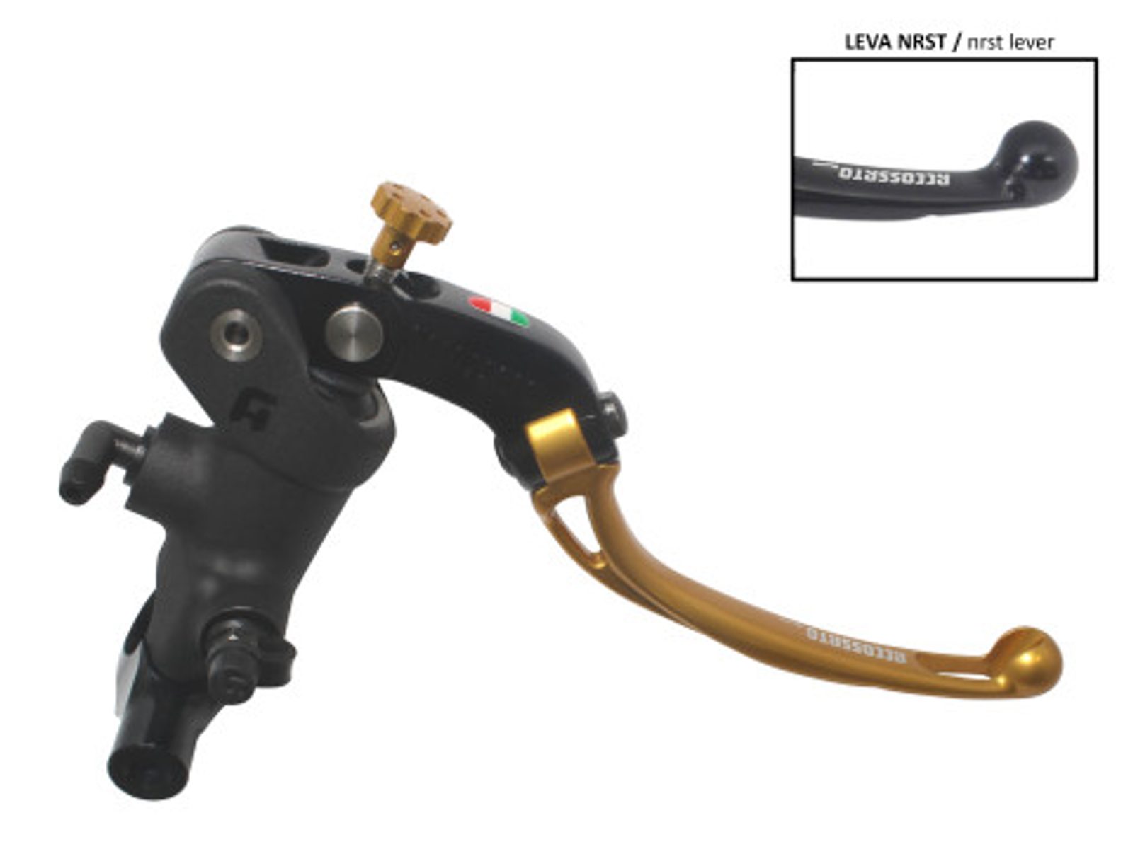 Radiální hlavní brzdový válec ACCOSSATO 19 x 19 se sklápěcí páčkou, zlatý