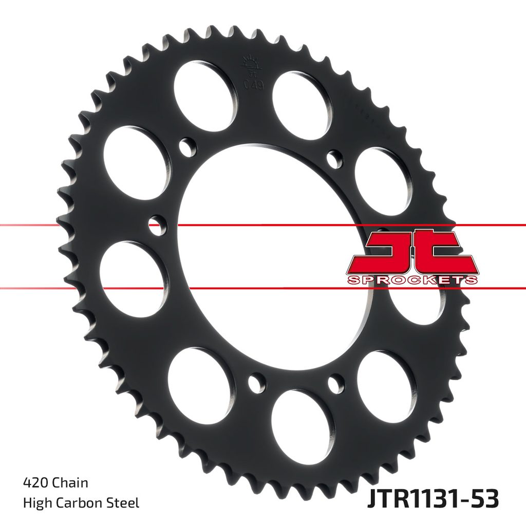 JT rozety jsou vyráběny z prvotřídní vysokopevnostní uhlíkové oceli C49. Sortiment ocelových rozet JT aktuálně čítá více než 2 500 dílů pro motocykly a čtyřkolky všech značek.