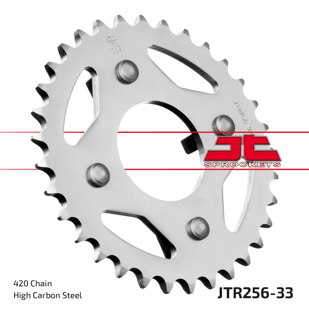 JT rozety jsou vyráběny z prvotřídní vysokopevnostní uhlíkové oceli C49. Sortiment ocelových rozet JT aktuálně čítá více než 2 500 dílů pro motocykly a čtyřkolky všech značek.